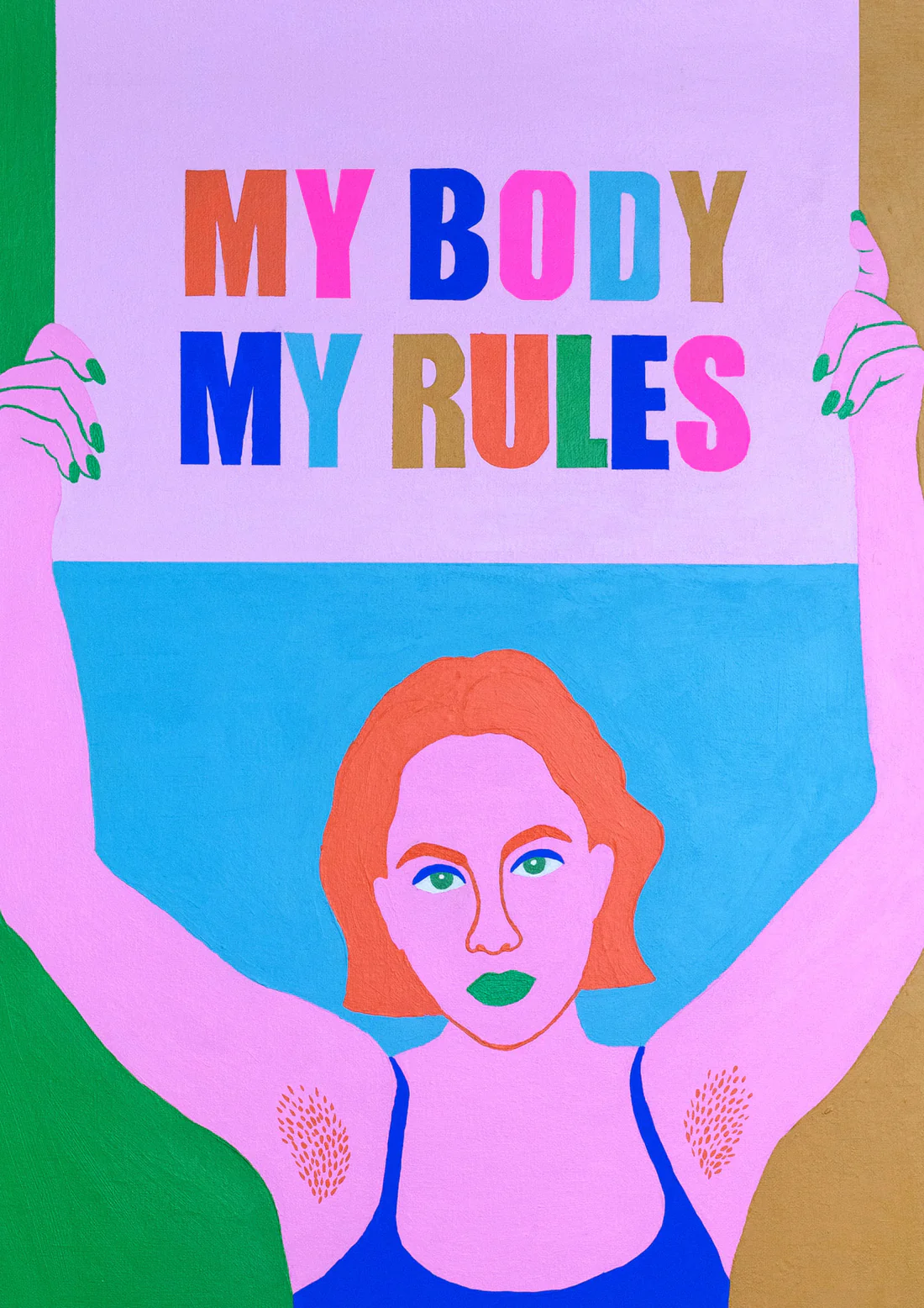 My artistic style is framed in Pop Art, and my approach manifests through a saturated and vibrant color palette, which I consider crucial for conveying my message. This message seeks to criticize and raise awareness in a society that often sees women more as objects of beauty and inspiration than as figures of strength and resilience in the face of an unequal system. My art is feminist and addresses issues of diversity and social taboos.
