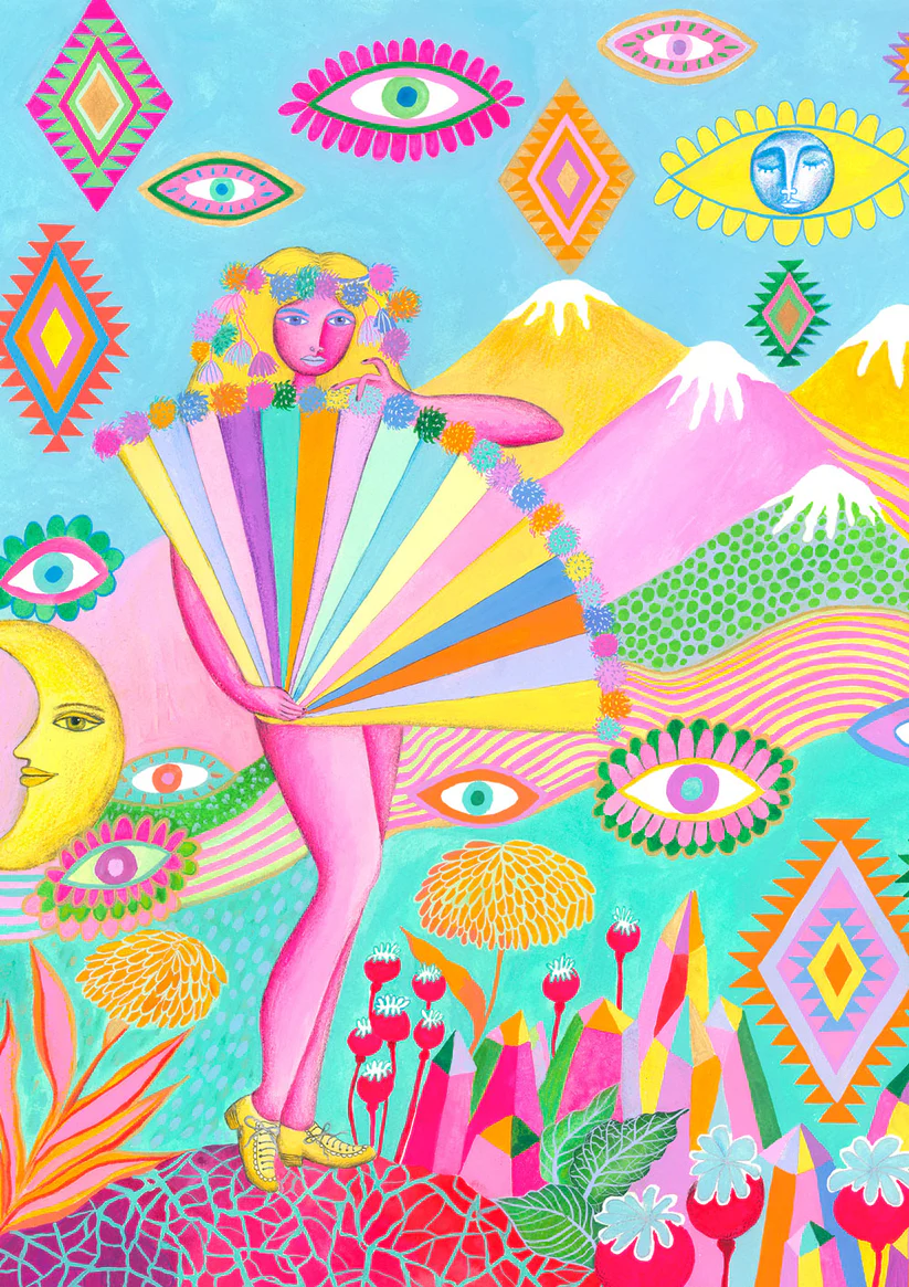 Through her vivid colors and compositions, Camila invites us to reflect on how women are perceived in different cultures and how those perceptions need to be transformed.